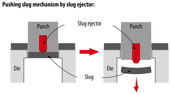 Please process without slug ejector when processing thick sheet with small punch dimension. In that case, please instruct us "No need slug ejector".